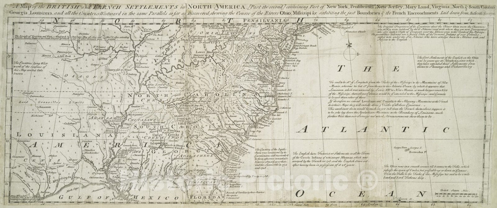 Historical Map, 1755 A Map of The British and French settlements in North America : (pthe Second) containing pof New York, Pensilvania, New Jersey, Mary Land, Vintage Wall Art