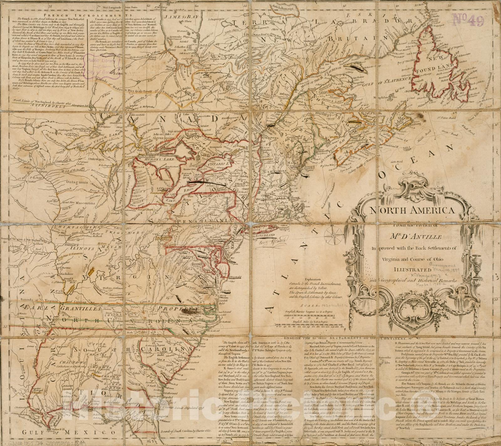 North America from the French of Mr. D'Anville, improved with the back settlements of Virginia and course of Ohio