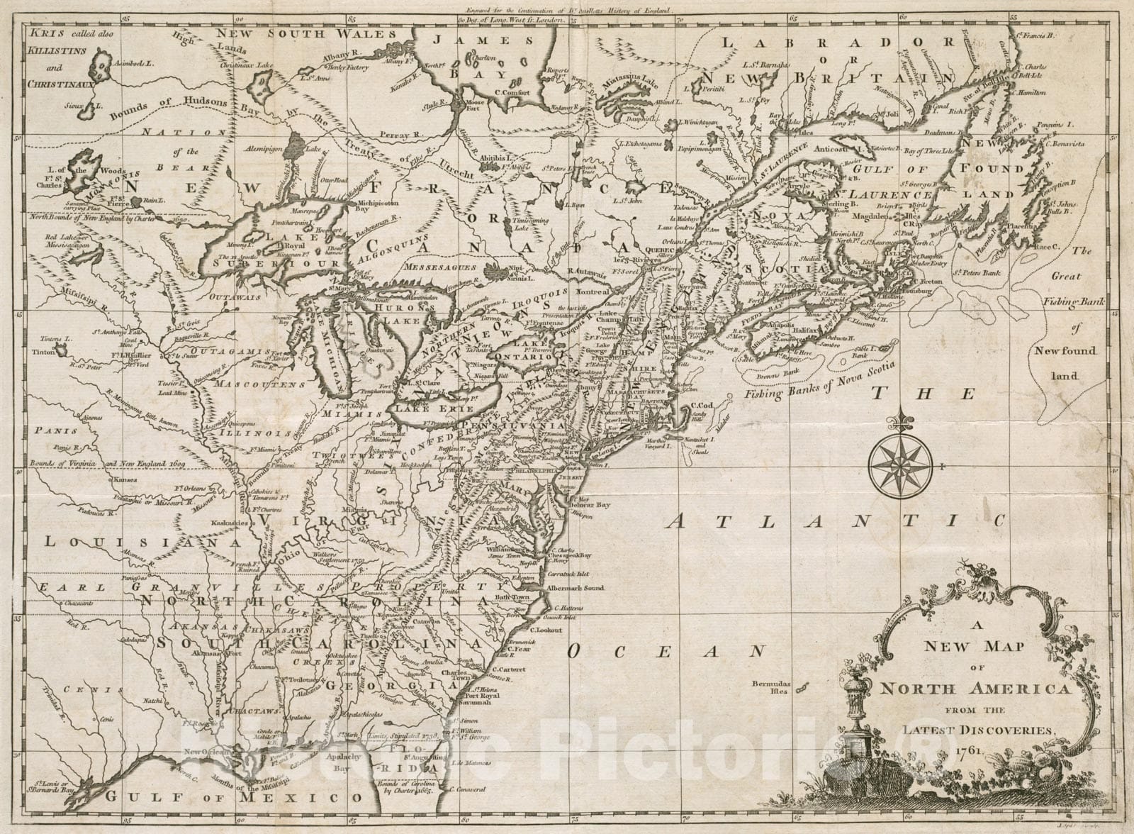 Historical Map, 1761 A New map of North America from The Latest Discoveries, Vintage Wall Art