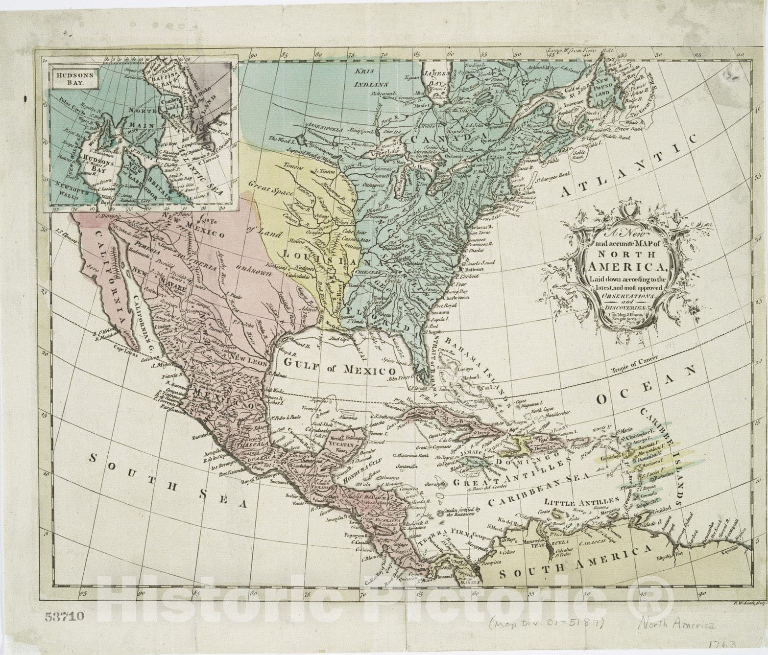 Historical Map, 1763 A New and Accurate map of North America : Laid Down According to The Latest, and Most Approved observations and Discoveries, Vintage Wall Art