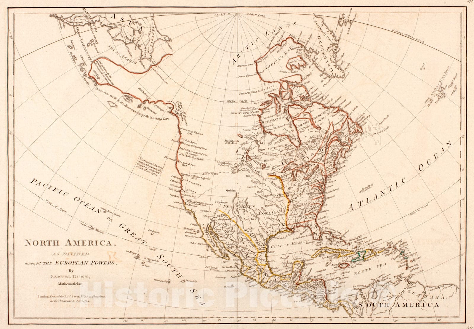 Historical Map, 1774 North America, as Divided Amongst The European Powers, Vintage Wall Art