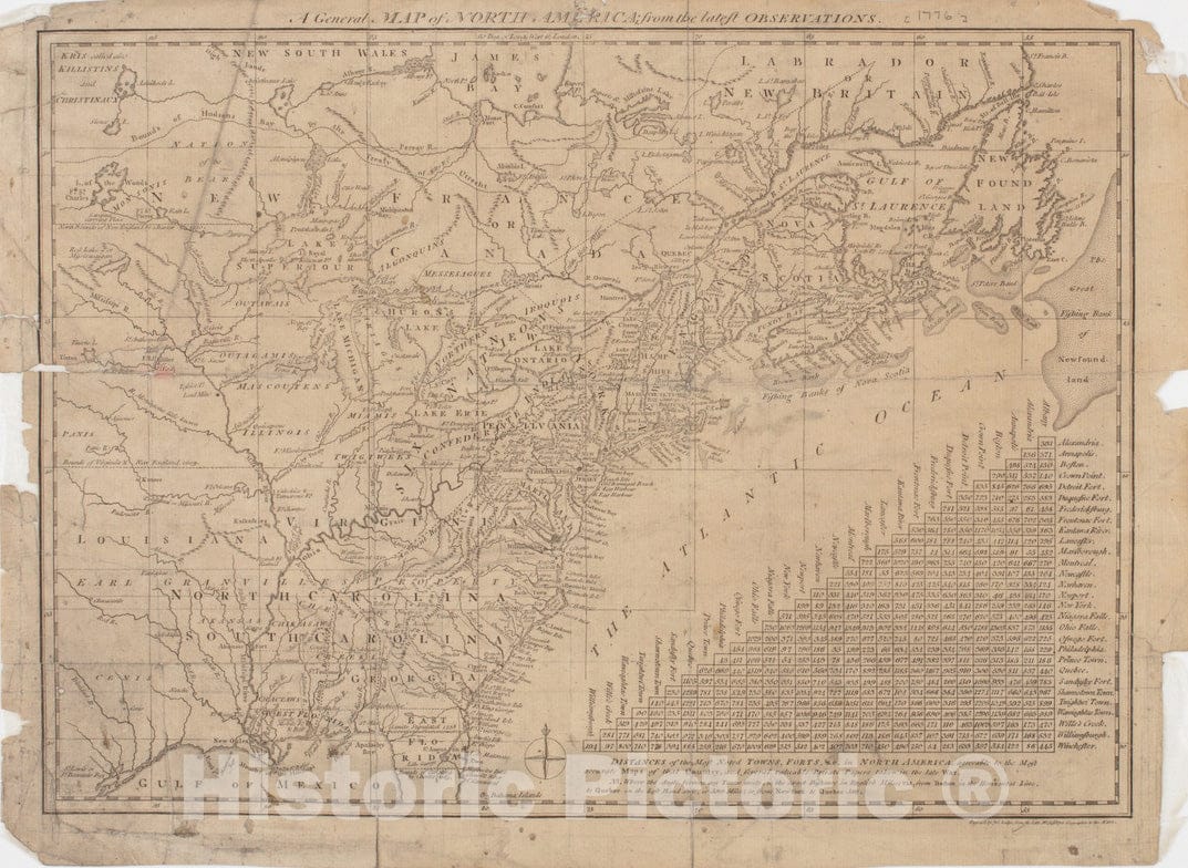 Historical Map, 1778 A General map of North America; : from The Latest observations, Vintage Wall Art