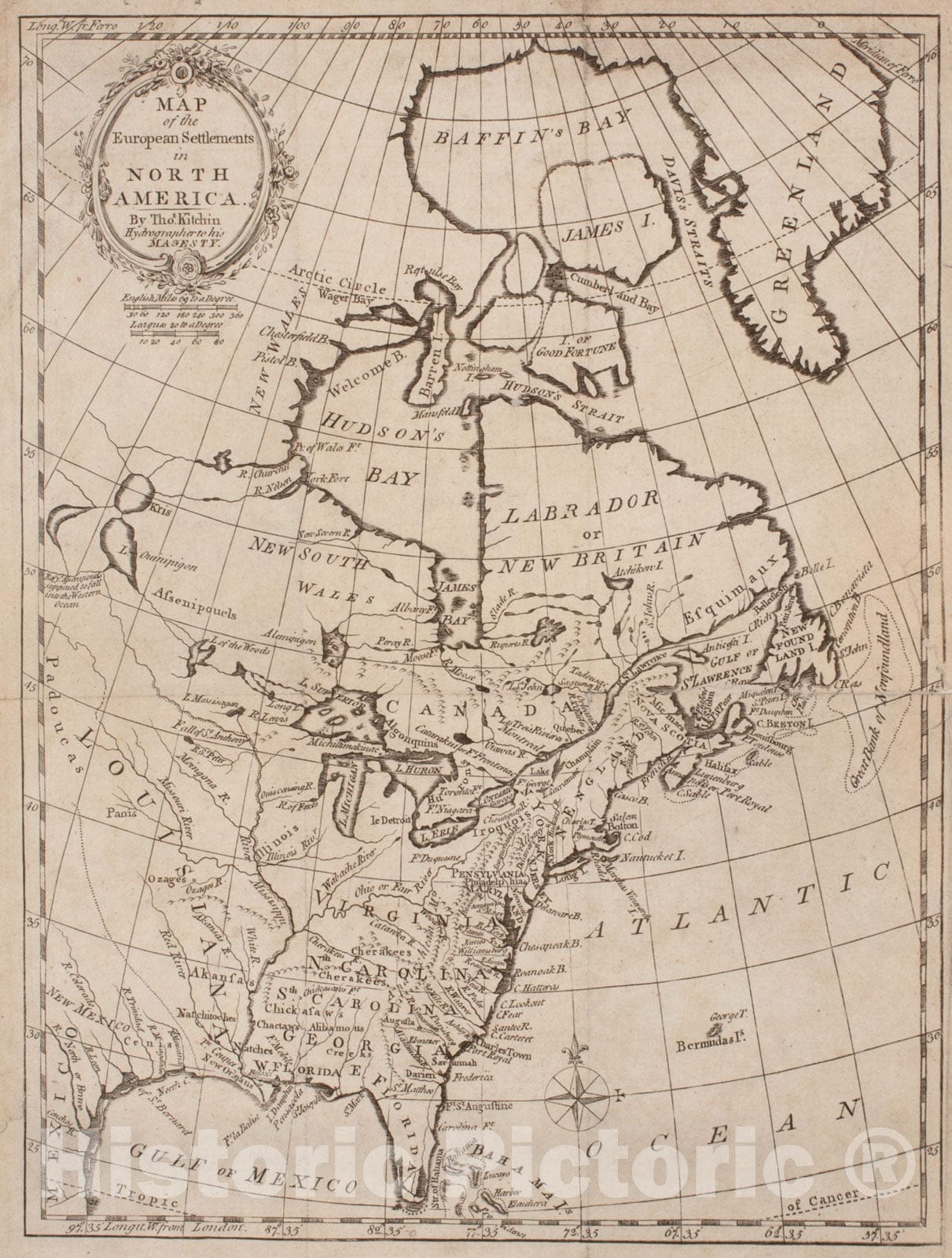Historical Map, 1779 Map of the European settlements in North America, Vintage Wall Art