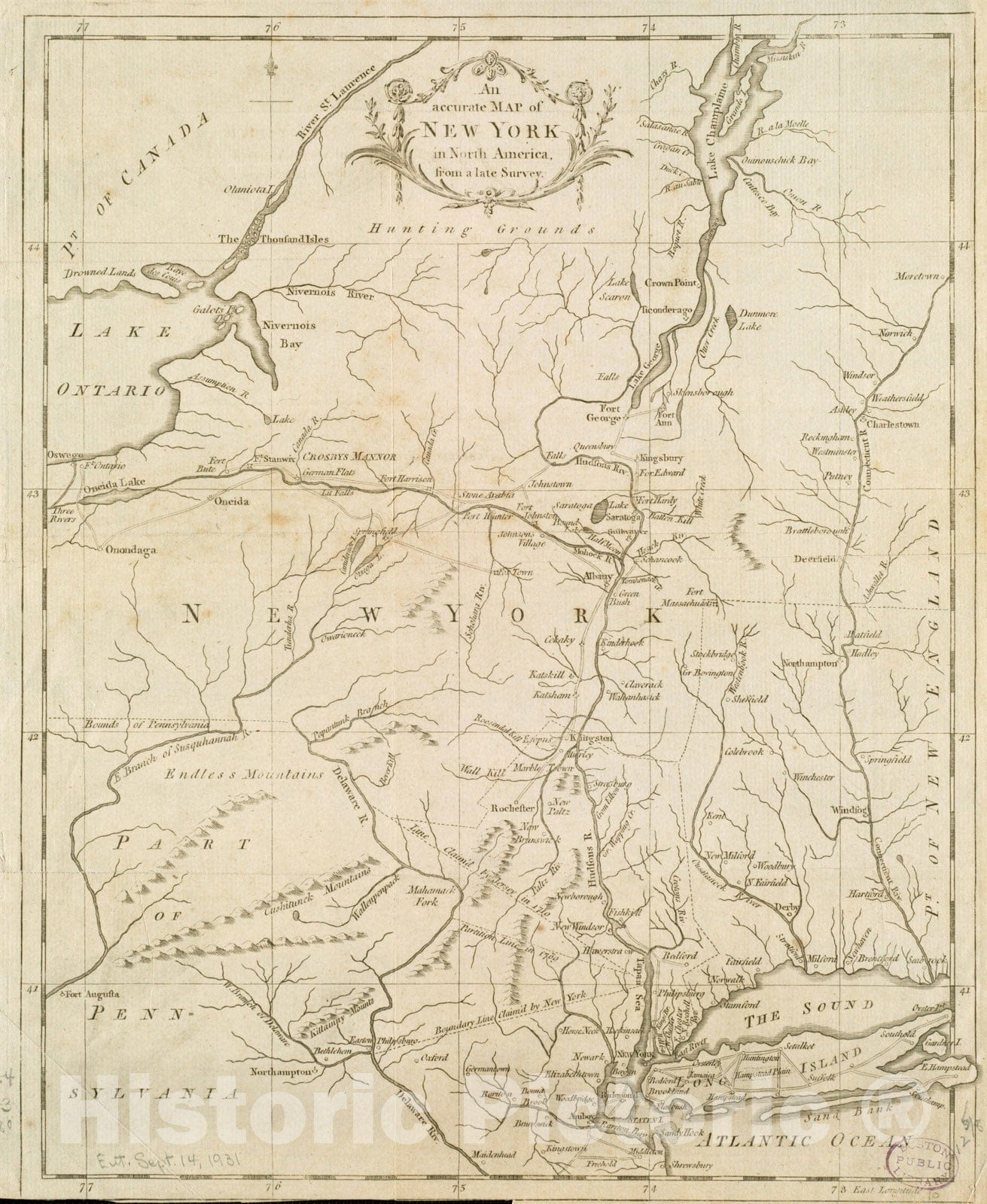 An Accurate map of New York in North America, from a late survey