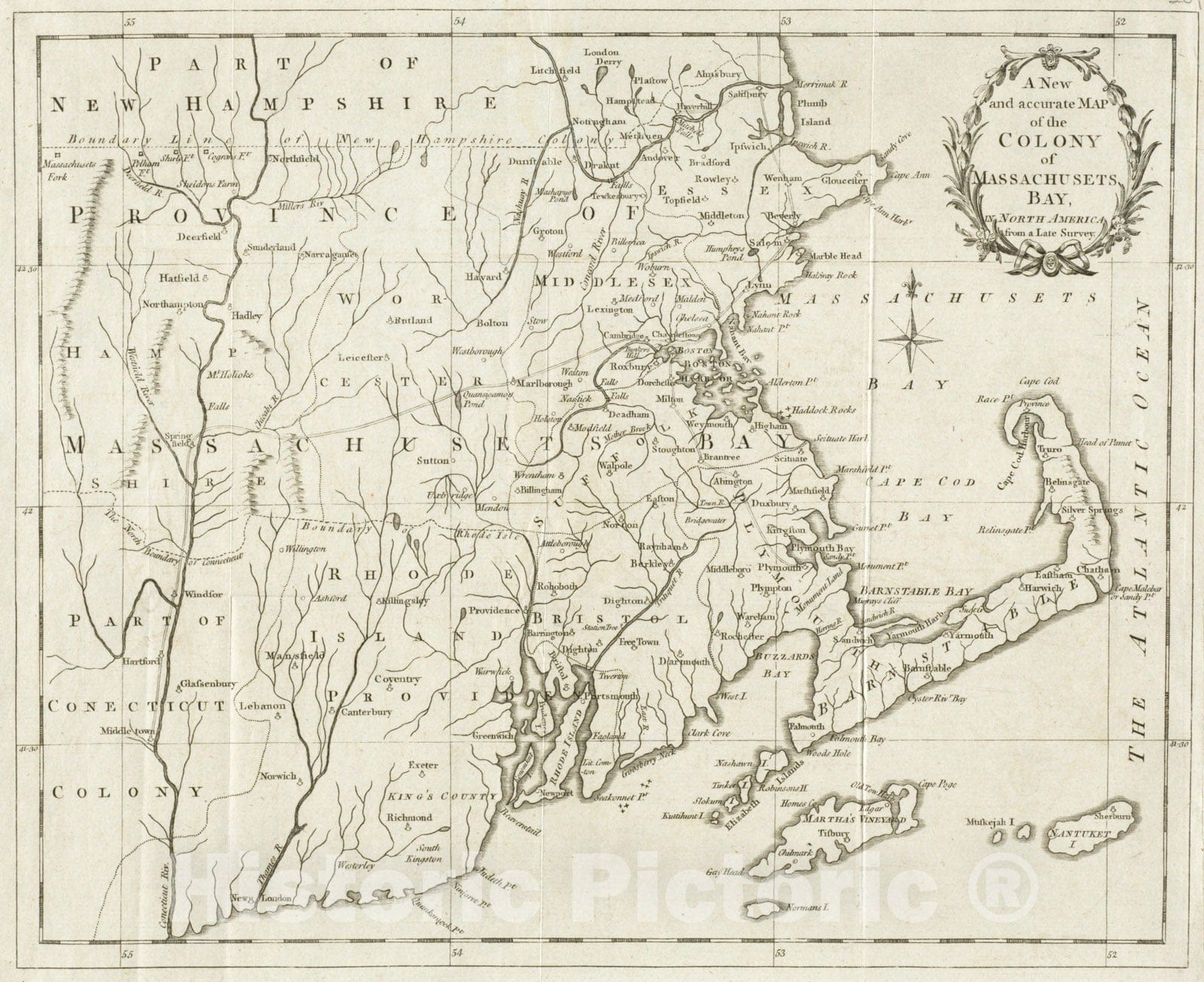 Historical Map, 1780 A New and Accurate map of The Colony of Massachusets Bay, in North America, from a Late Survey, Vintage Wall Art