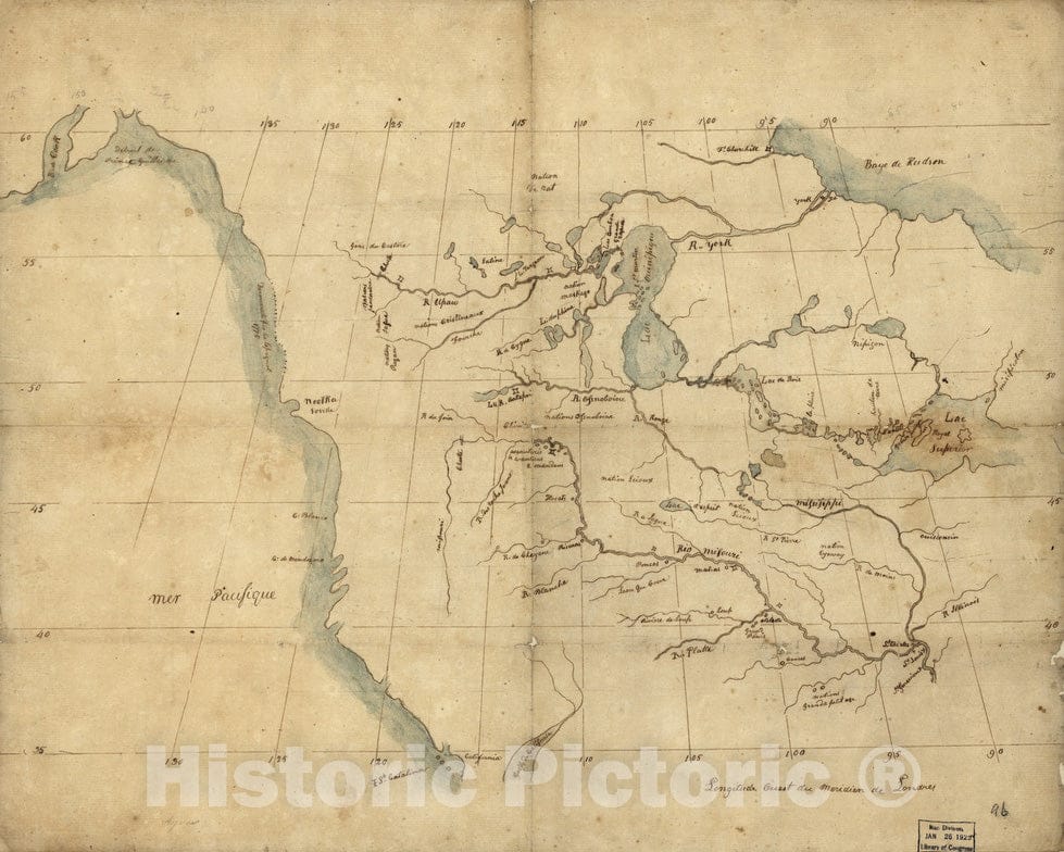 • .Historical Map, 1790-1799 North America from The Mississippi River to The Pacific, Between The 35th and 60th parallers of Latitude, Vintage Wall Art