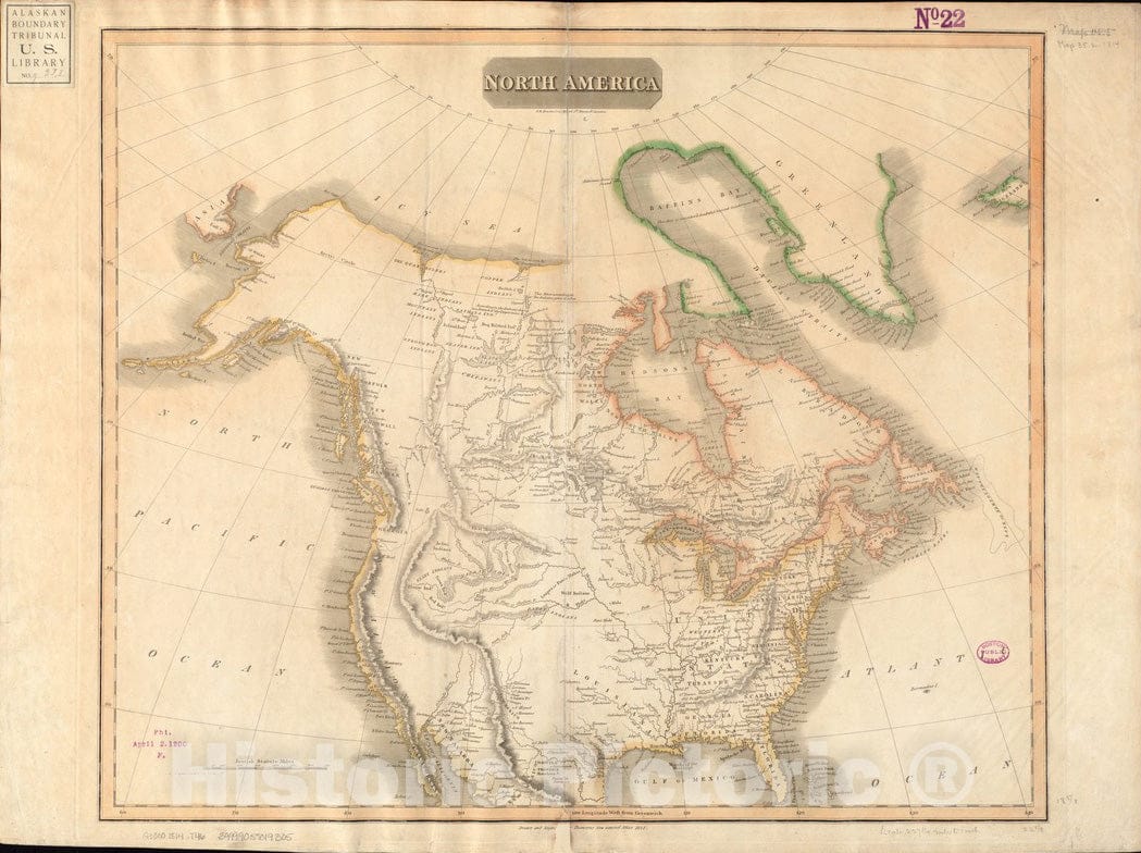 • .Historical Map, 1814 North America, Vintage Wall Art