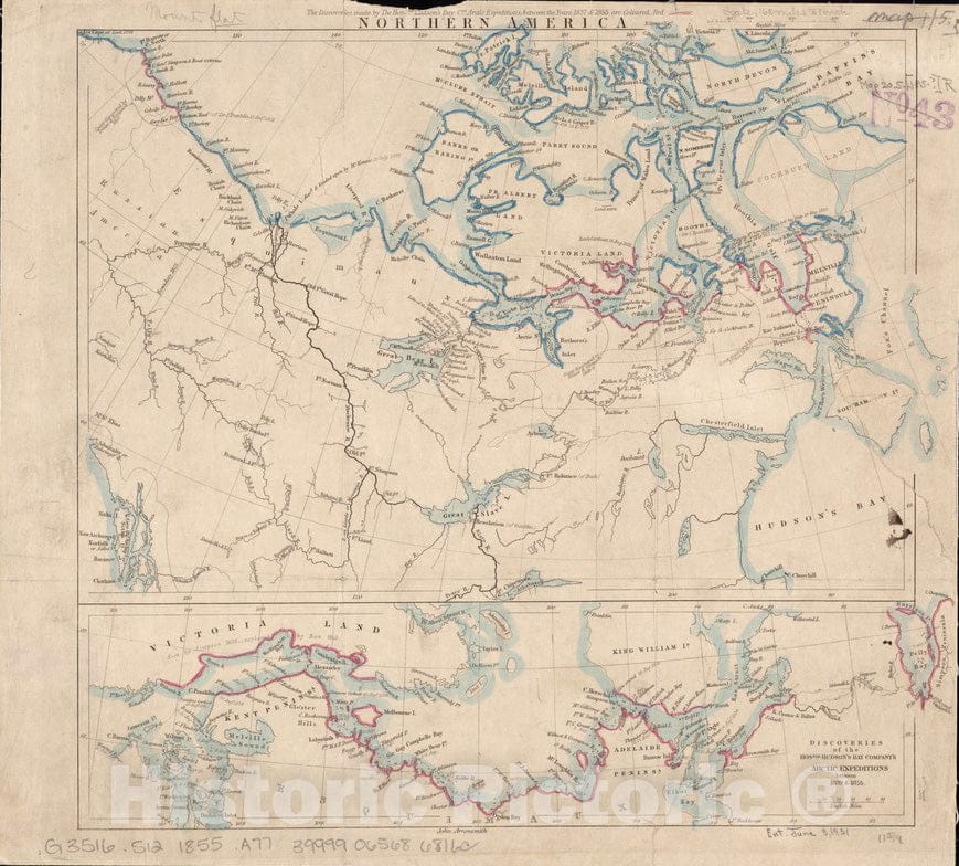 • Historical Map, 1850-1859 Northern America, Vintage Wall Art