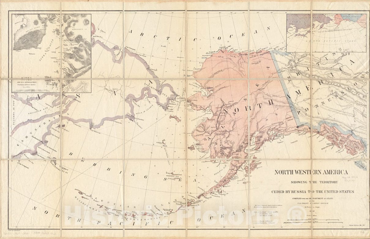Historical Map, 1867 North Western America Showing The Territory ceded by Russia to The United States, Vintage Wall Art