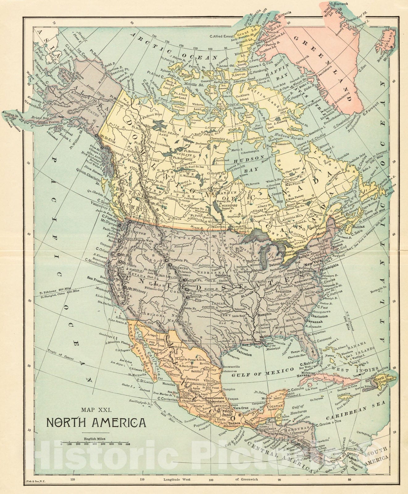 Historical Map, 1890-1900 North America, Vintage Wall Art