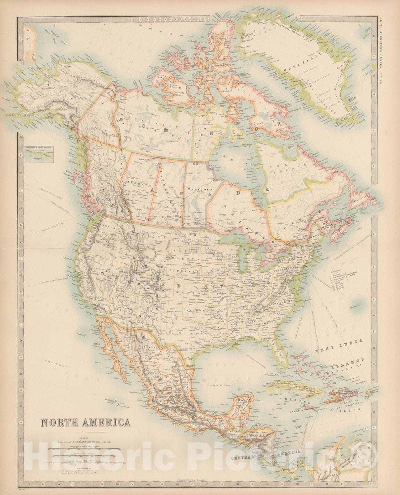 Historic Map : Atlas World, North America 1912 , Vintage Wall Art