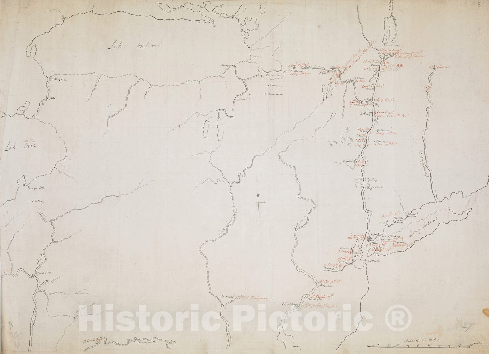 Historical Map, ca. 1758 [Map Showing Rivers and forts in North America], Vintage Wall Art