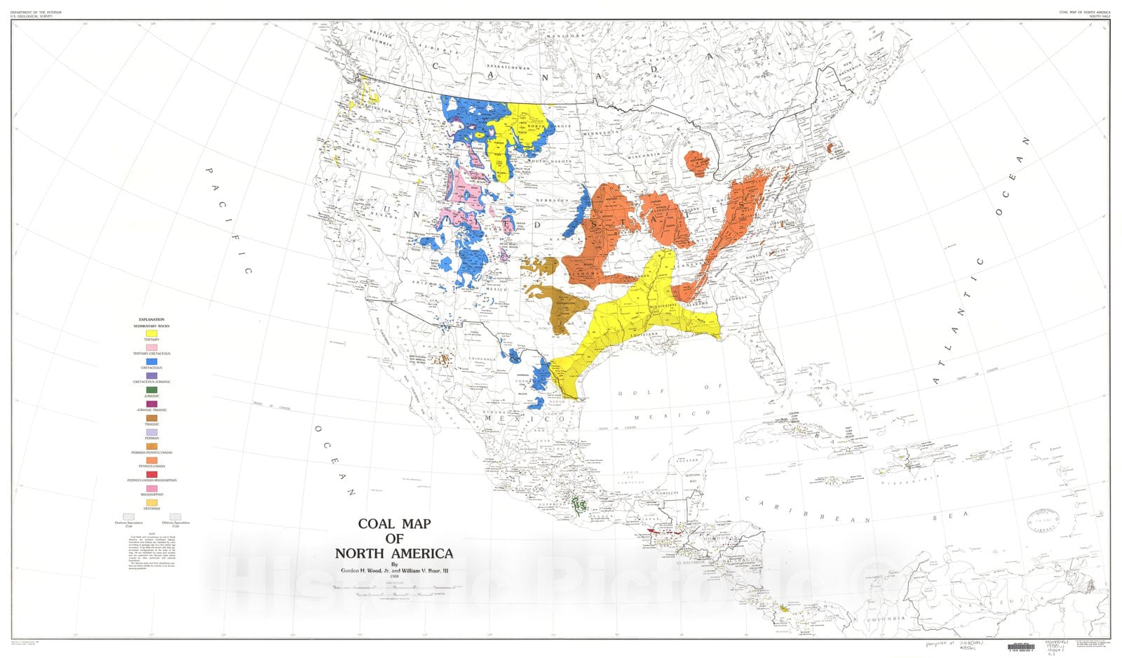 Map : Coal map of North America, 1988 Cartography Wall Art :