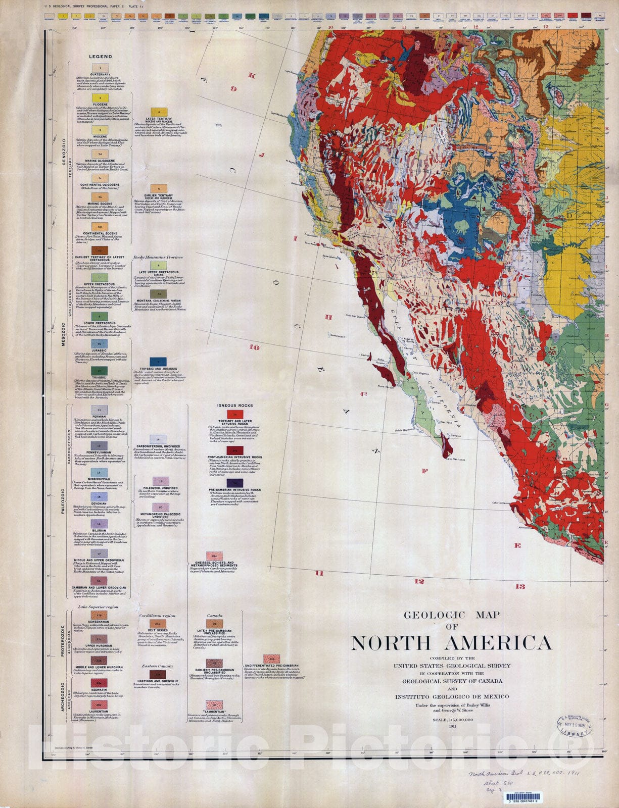Map : Index to the stratigraphy of North America accompanied by a geologic map of North America, 1912 Cartography Wall Art :