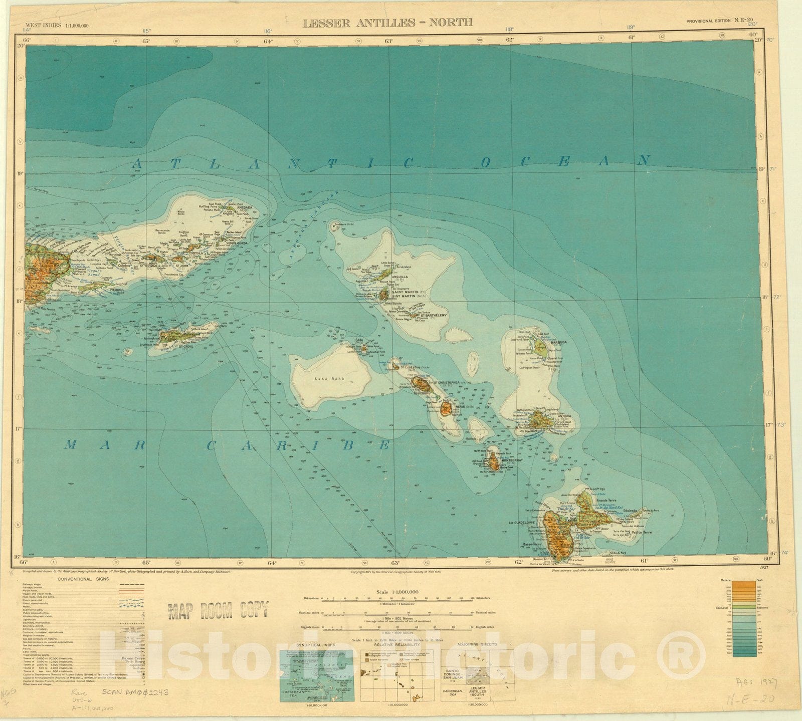 Map : Lesser Antilles-North 1927, Map of Hispanic America, Antique Vintage Reproduction