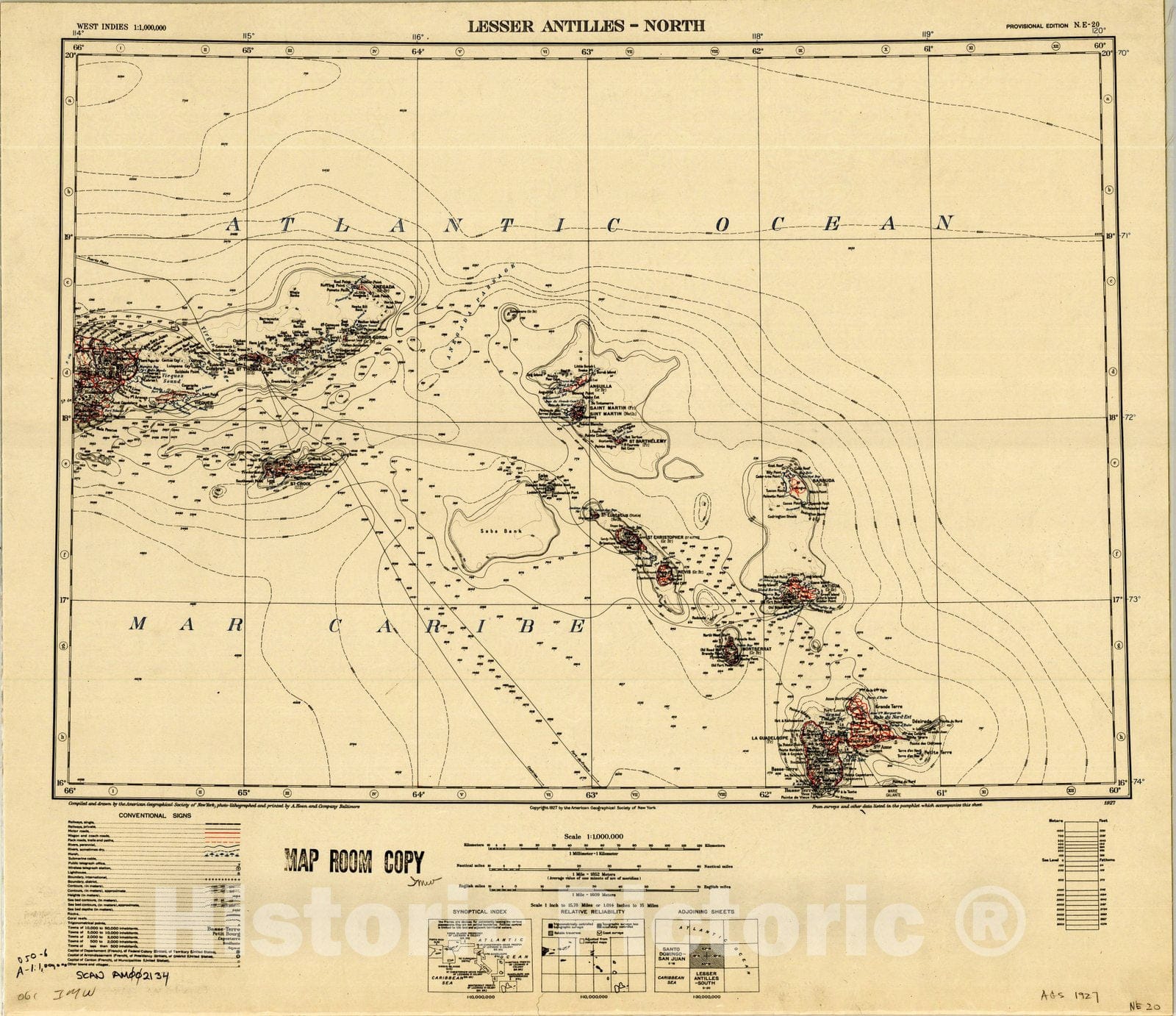 Map : Lesser Antilles-North 1955 1960, Map of Hispanic America, Antique Vintage Reproduction