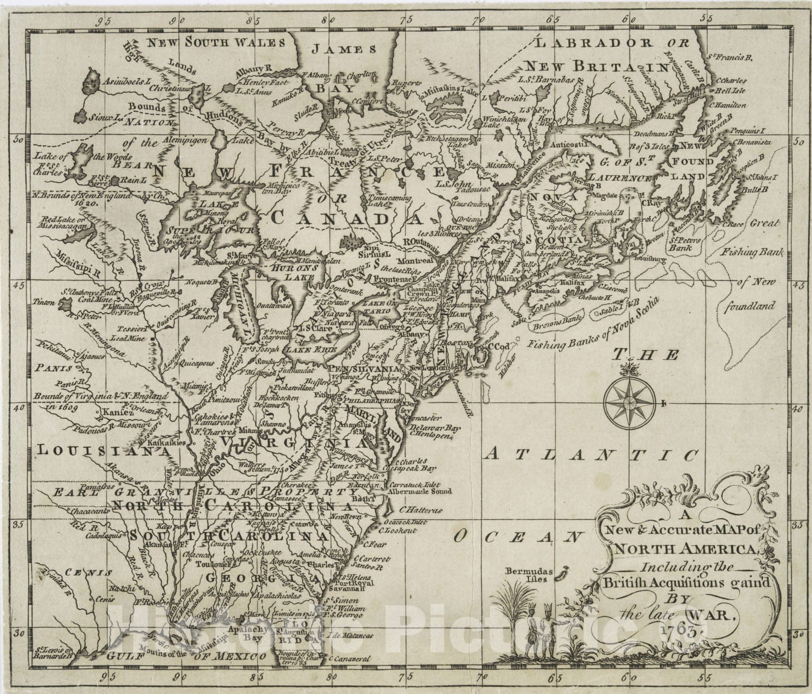 Historical Map, A New & Accurate map of North America : Including The British acquisitions gained by The Late war, 1763, Vintage Wall Art