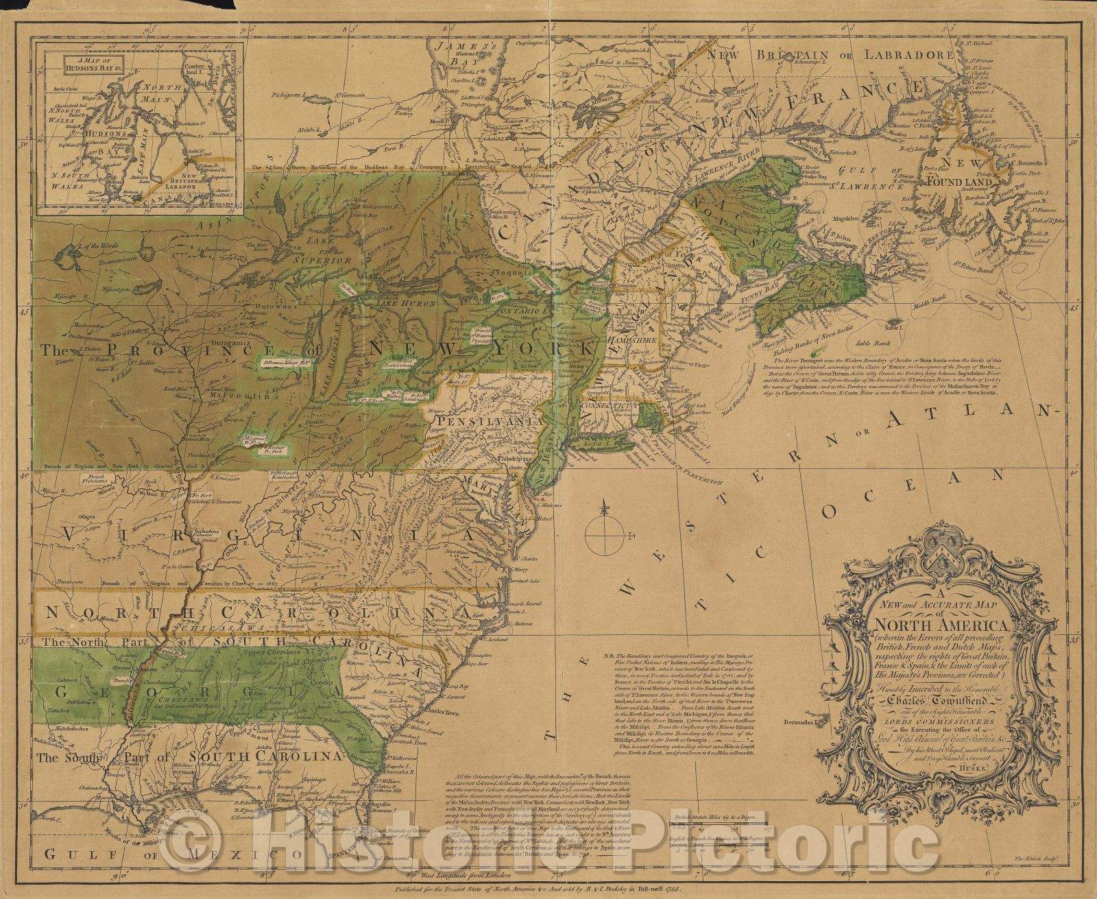 Historic Map : A New and Accurate Map of North America, (wherein the Errors of all preceeding British, French and Dutch maps, respecting the rights of Great Britain, 1755 , Vintage Wall Art