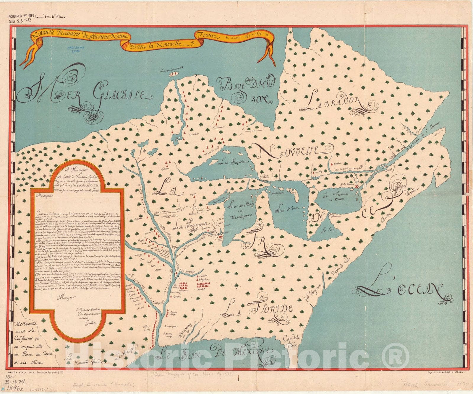 Historic Map : North America 1674 1896, Nouvelle decouverte de plusieurs nations dans la Nouvelle France en l'annee 1673 et 1674. Joliet's map, 1674, Antique Vintage Reproduction