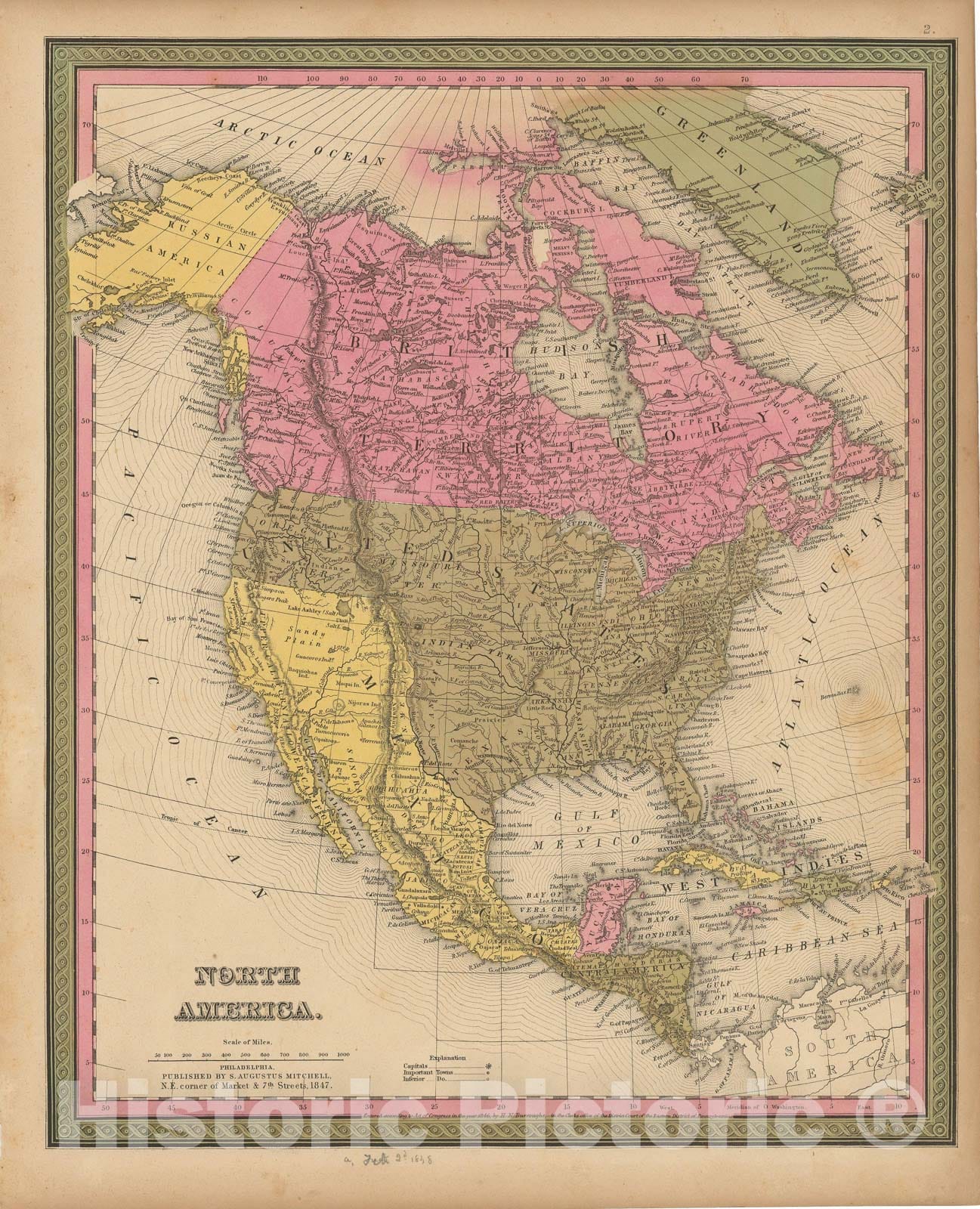 Historic Map : North America 1847 , A New Universal Atlas of the World , Vintage Wall Art