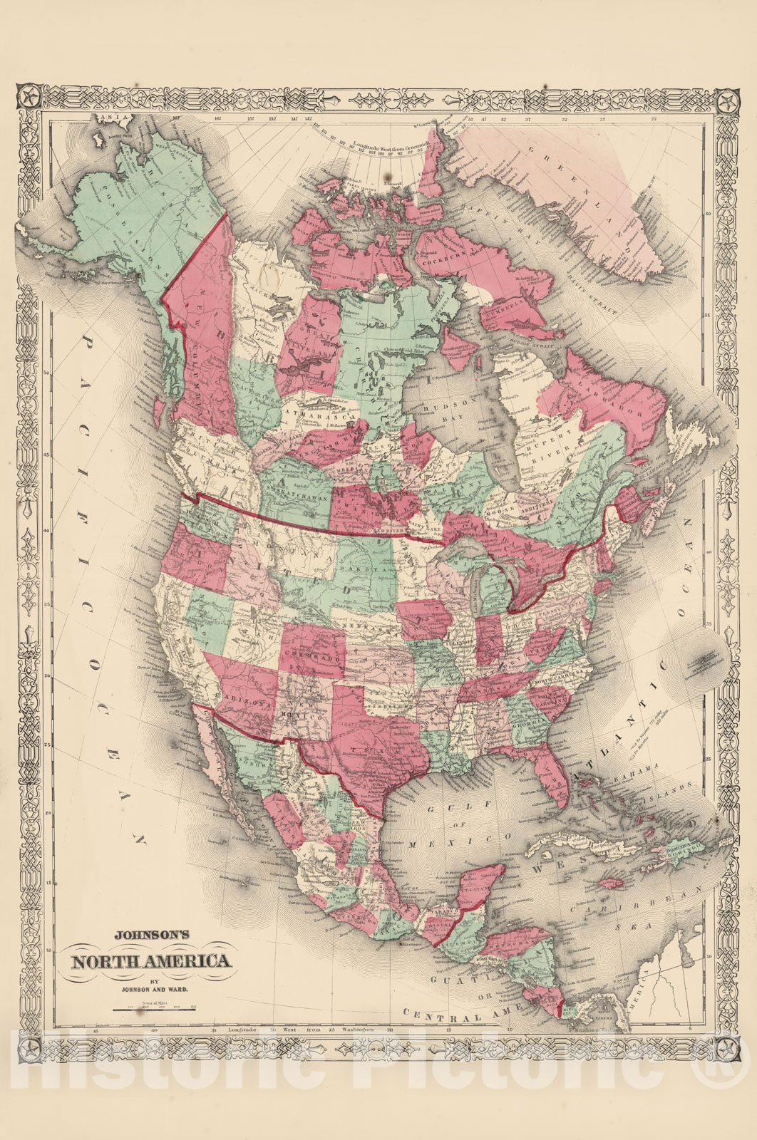 Historic Map : North America 1865 , Johnson's Family Atlas , Vintage Wall Art