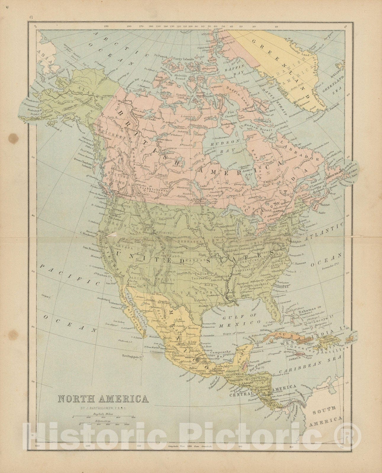 Historic Map : North America 1875 , Student Atlas of Modern Geography , Vintage Wall Art