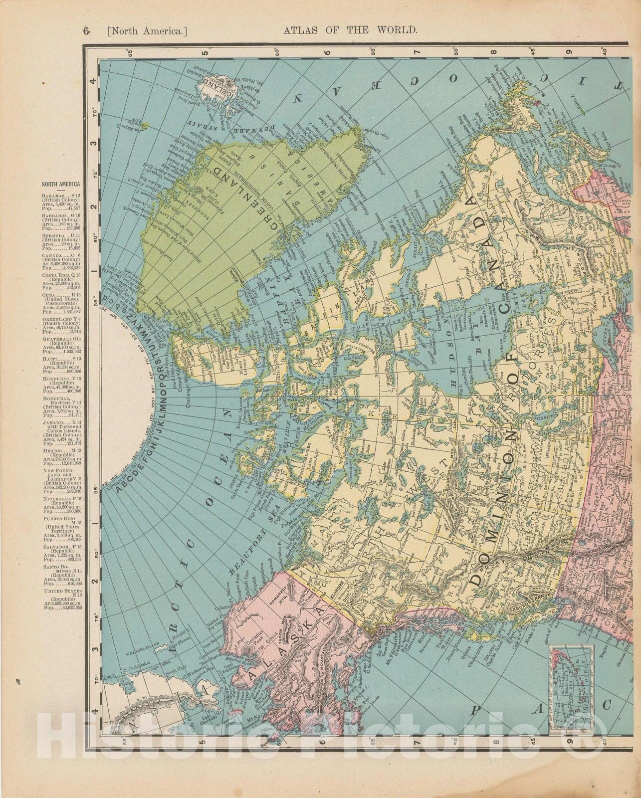 Historic Map : North America 1900 , Universal Atlas World , Vintage Wall Art