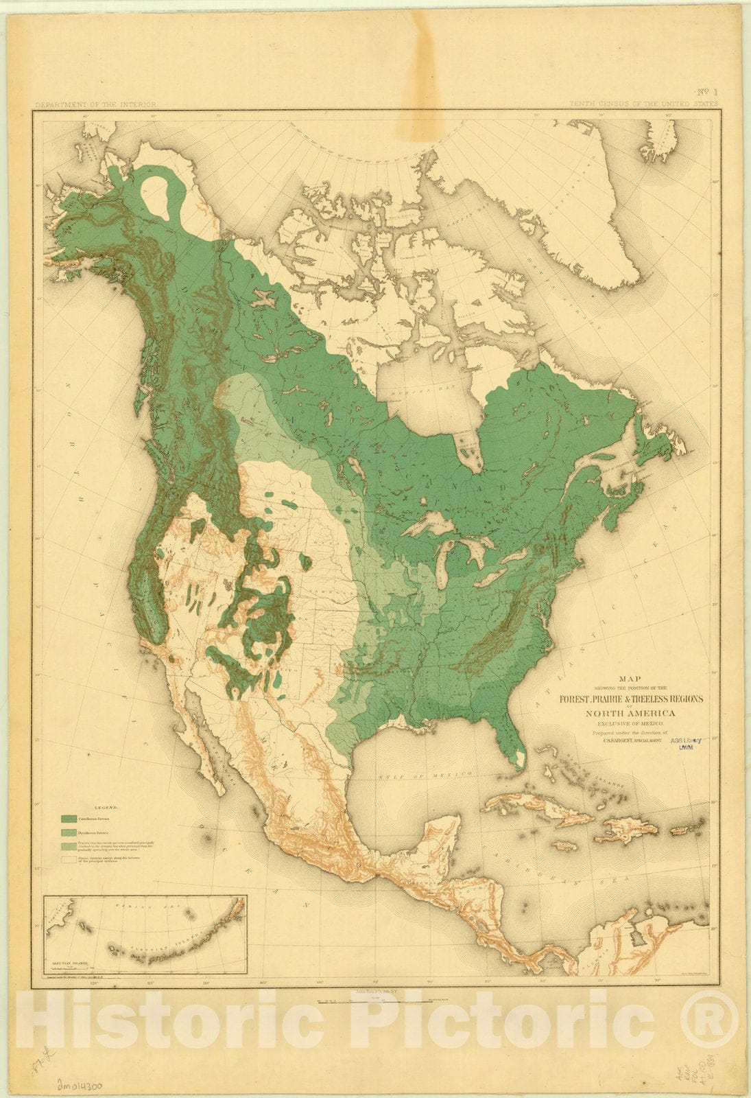 Map : North America Forest Trees 1884 1, Sixteen maps accompanying Report on forest trees of North America , Antique Vintage Reproduction