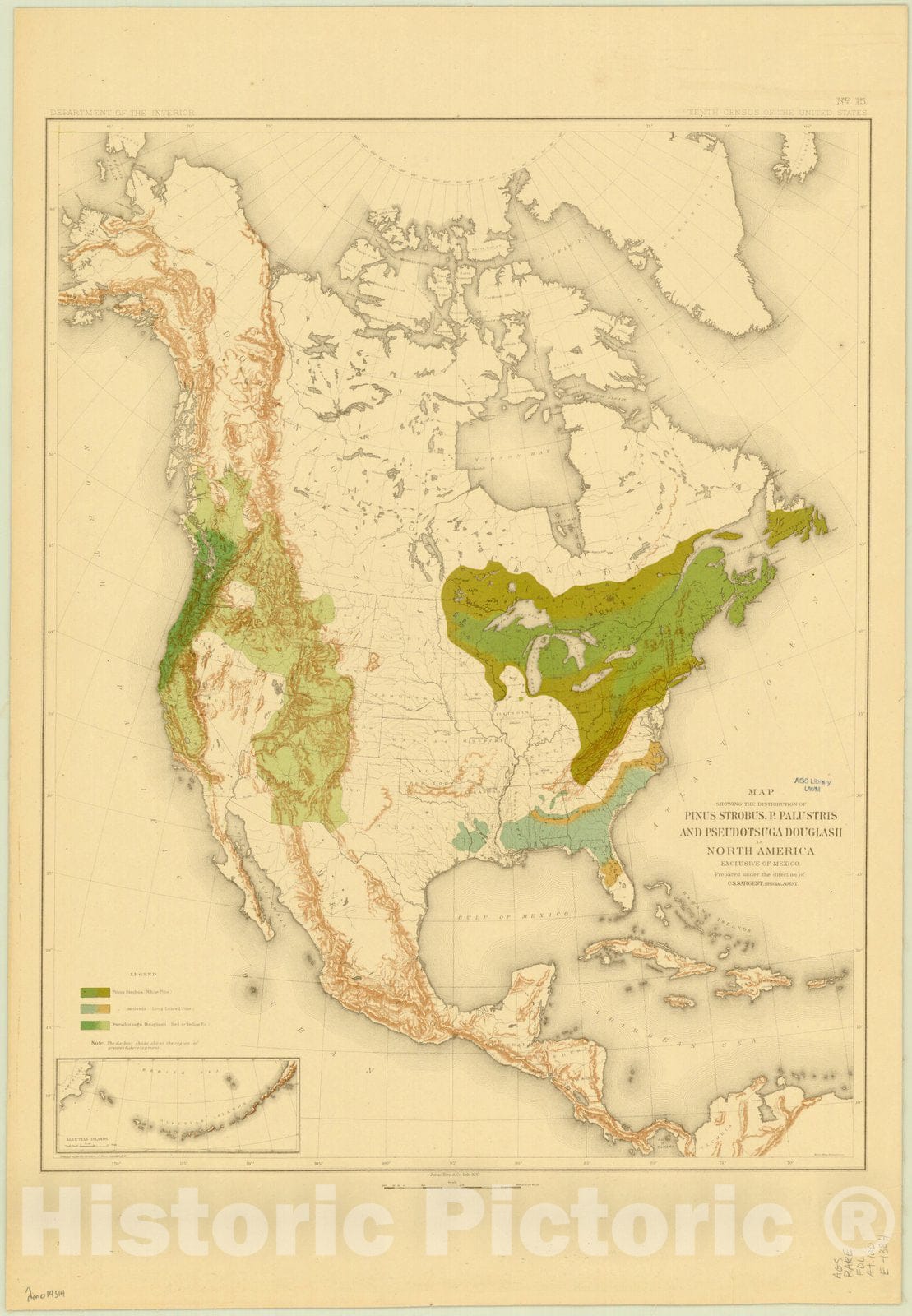 Map : North America Forest Trees 1884 4, Sixteen maps accompanying Report on forest trees of North America , Antique Vintage Reproduction