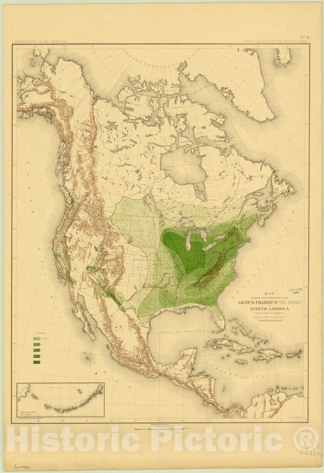 Map : North America Forest Trees 1884 7, Sixteen maps accompanying Report on forest trees of North America , Antique Vintage Reproduction