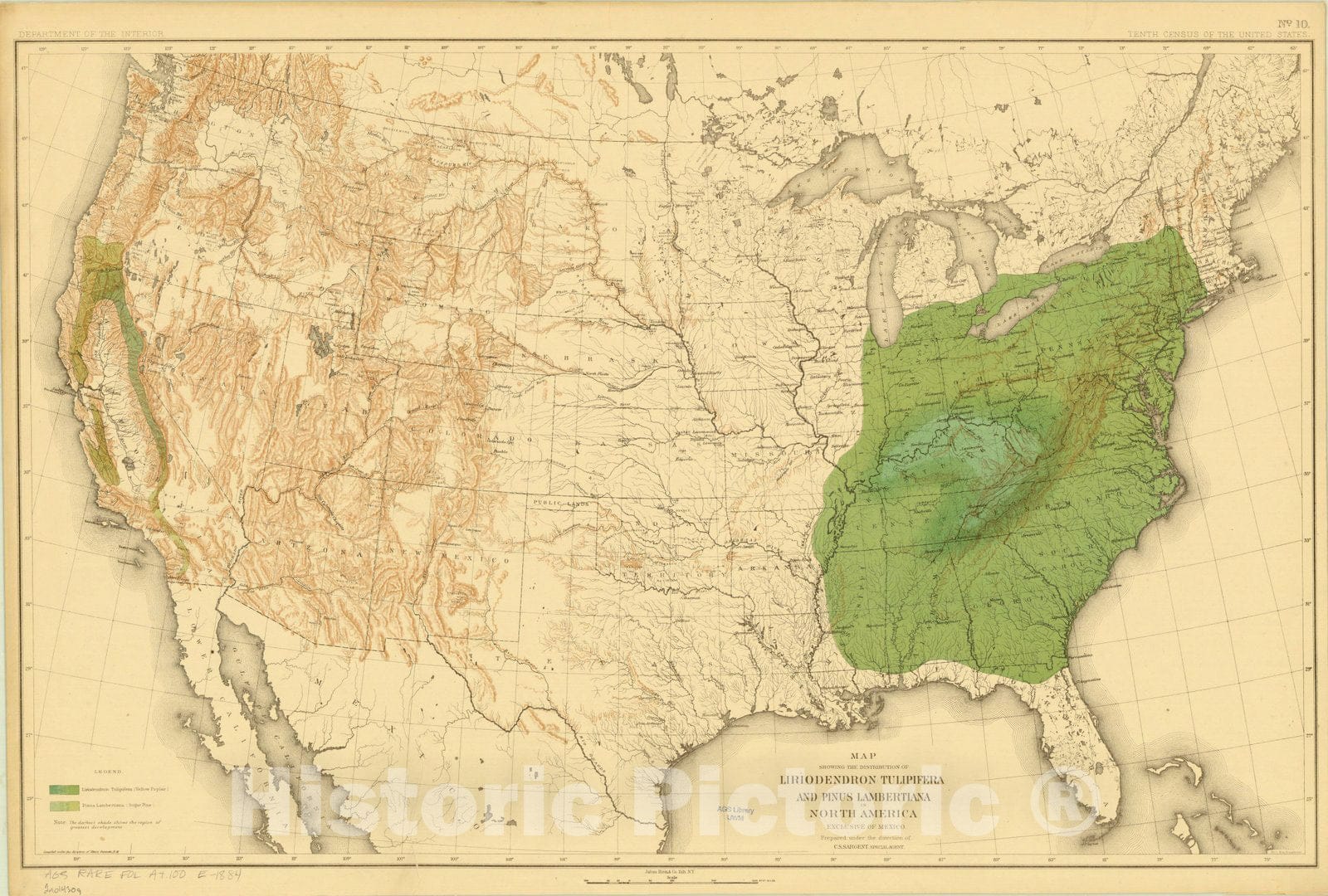 Map : North America Forest Trees 1884 15, Sixteen maps accompanying Report on forest trees of North America , Antique Vintage Reproduction