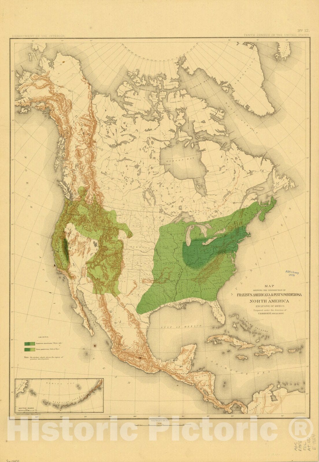 Map : North America Forest Trees 1884 2, Sixteen maps accompanying Report on forest trees of North America , Antique Vintage Reproduction