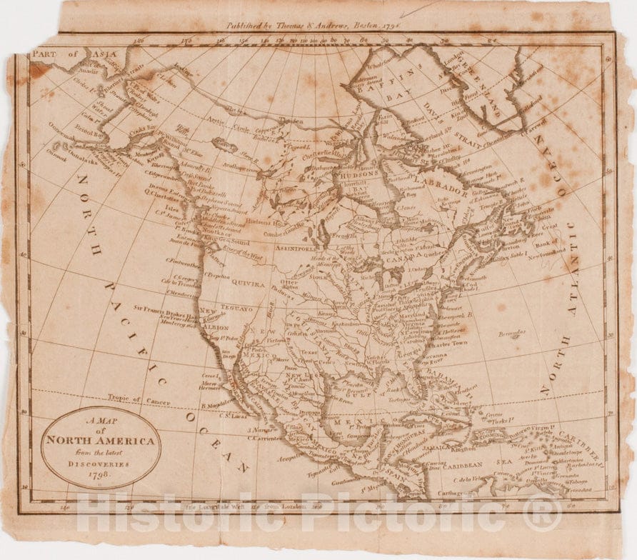Historical Map, A Map of North America from The Latest Discoveries 1798, Vintage Wall Art