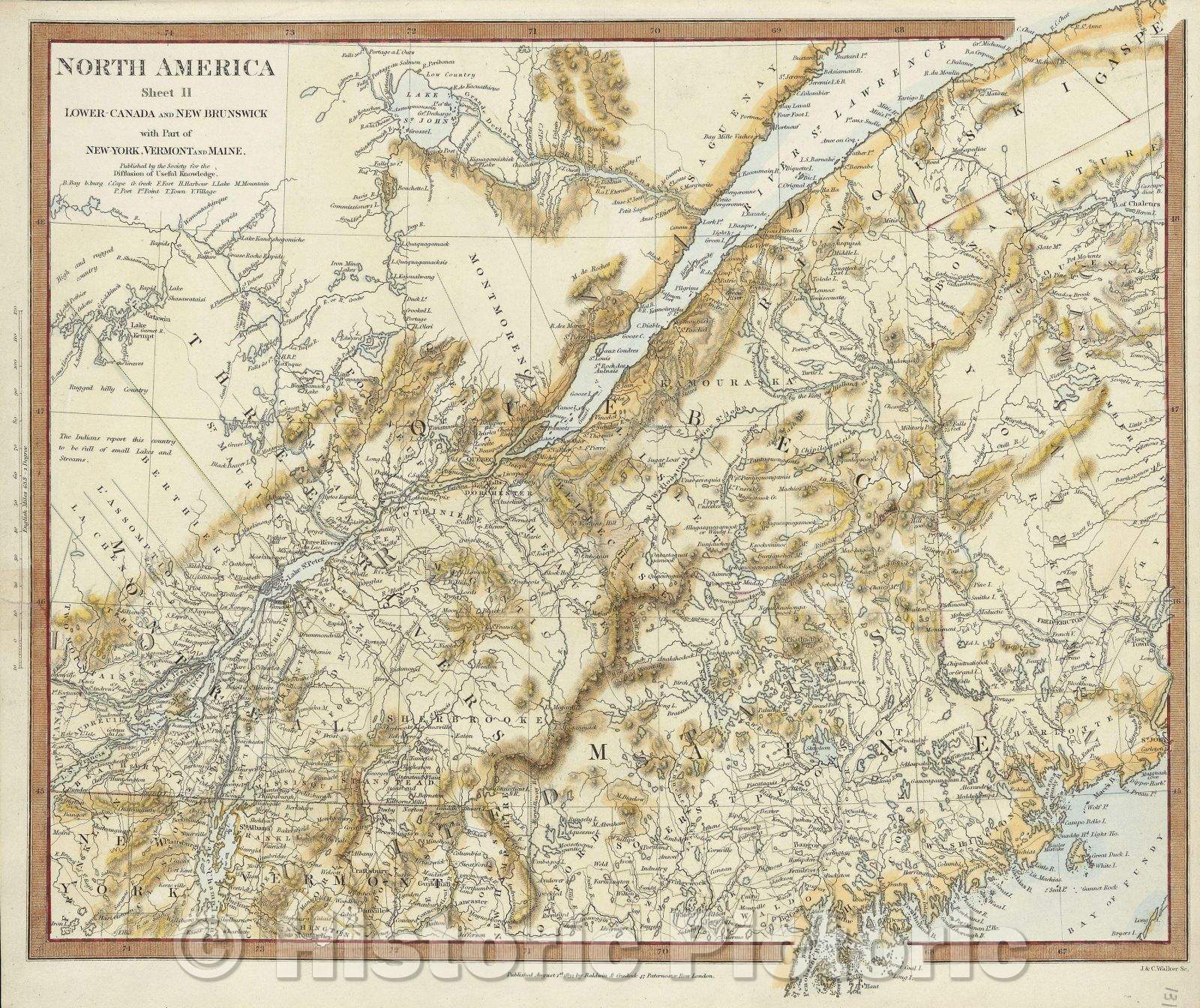 Historic Map : North America Sheet II, Lower Canada and New Brunswick with part of New York, Vermont and Maine, 1832 , Vintage Wall Art