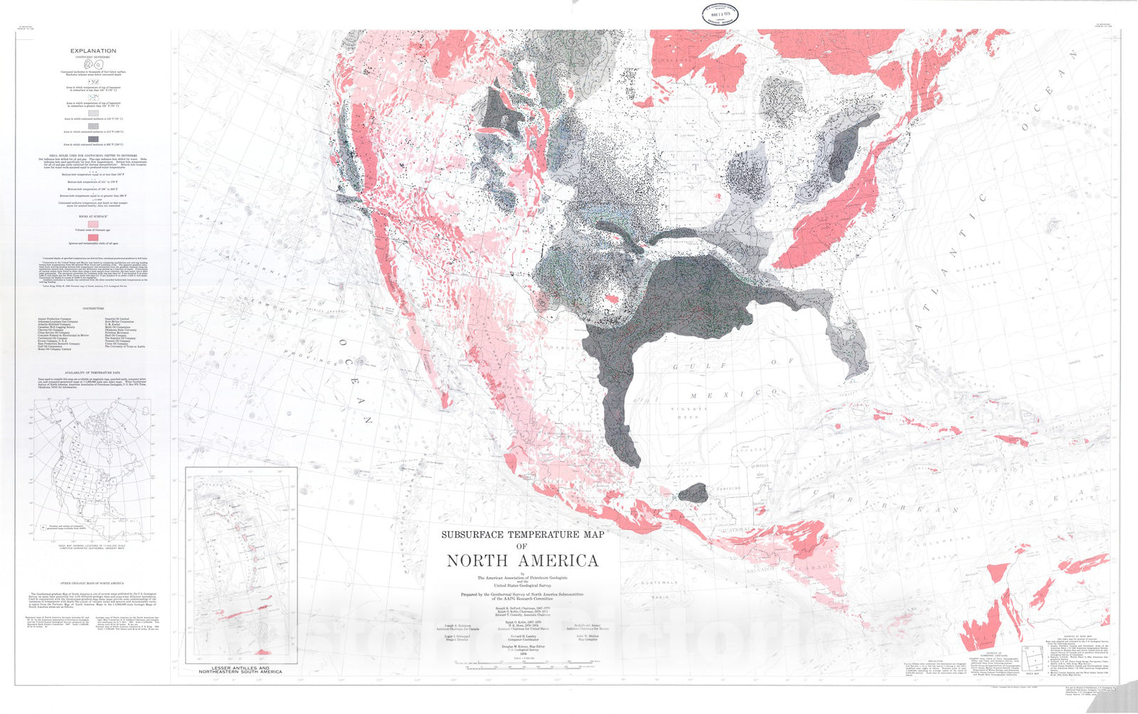 Map : Subsurface temperature map of North America, 1976 Cartography Wall Art :