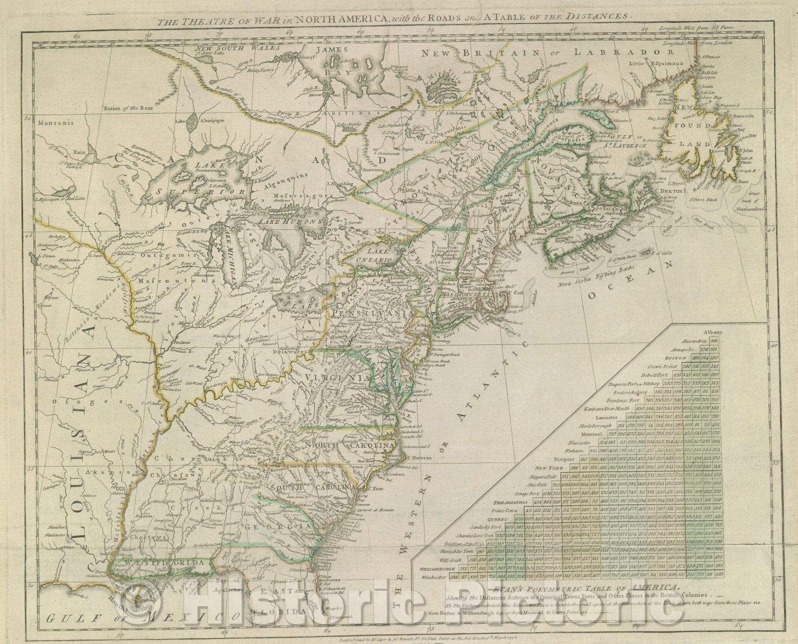 Historic Map : The Theatre of War in North America, with the Roads and a Table of the Distances., 1776 , Vintage Wall Art