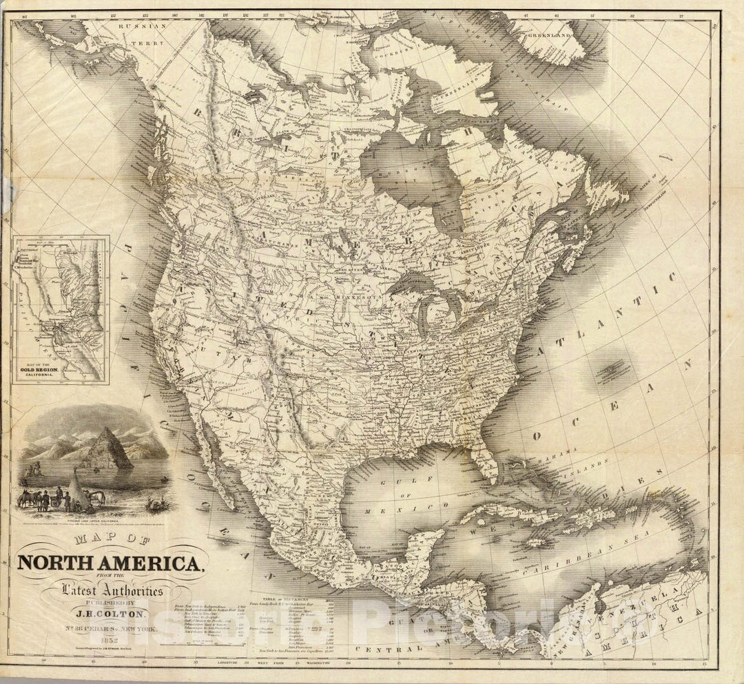 Historic Map : Map of North America from the latest authorities, 1852 - Vintage Wall Art