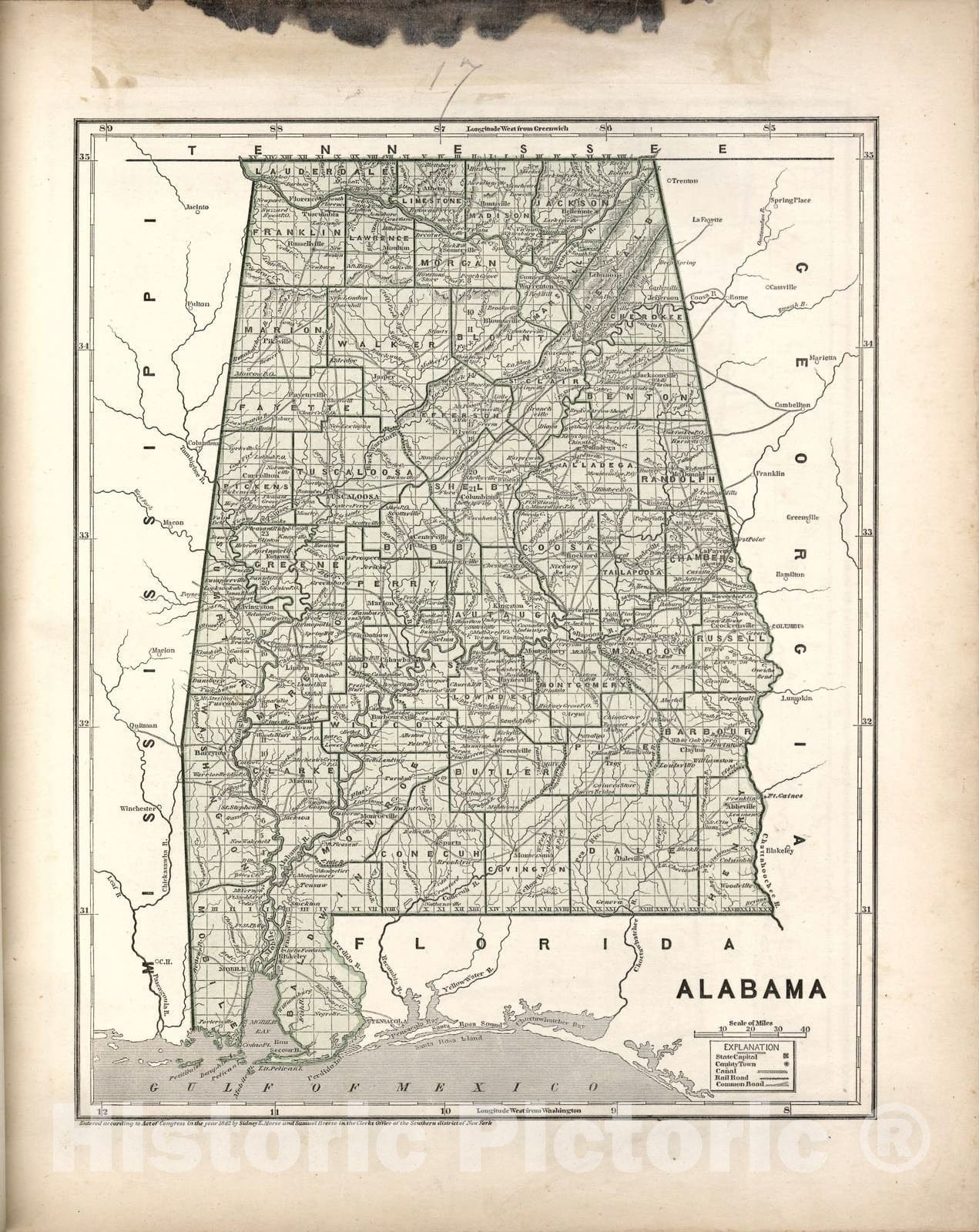 Historic 1842 Map - Morse's North American Atlas. - Alabama - Morse's cerographic maps