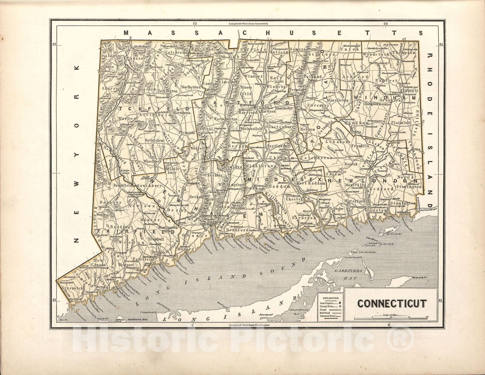 Historic 1842 Map - Morse's North American Atlas. - Connecticut - Morse's cerographic maps