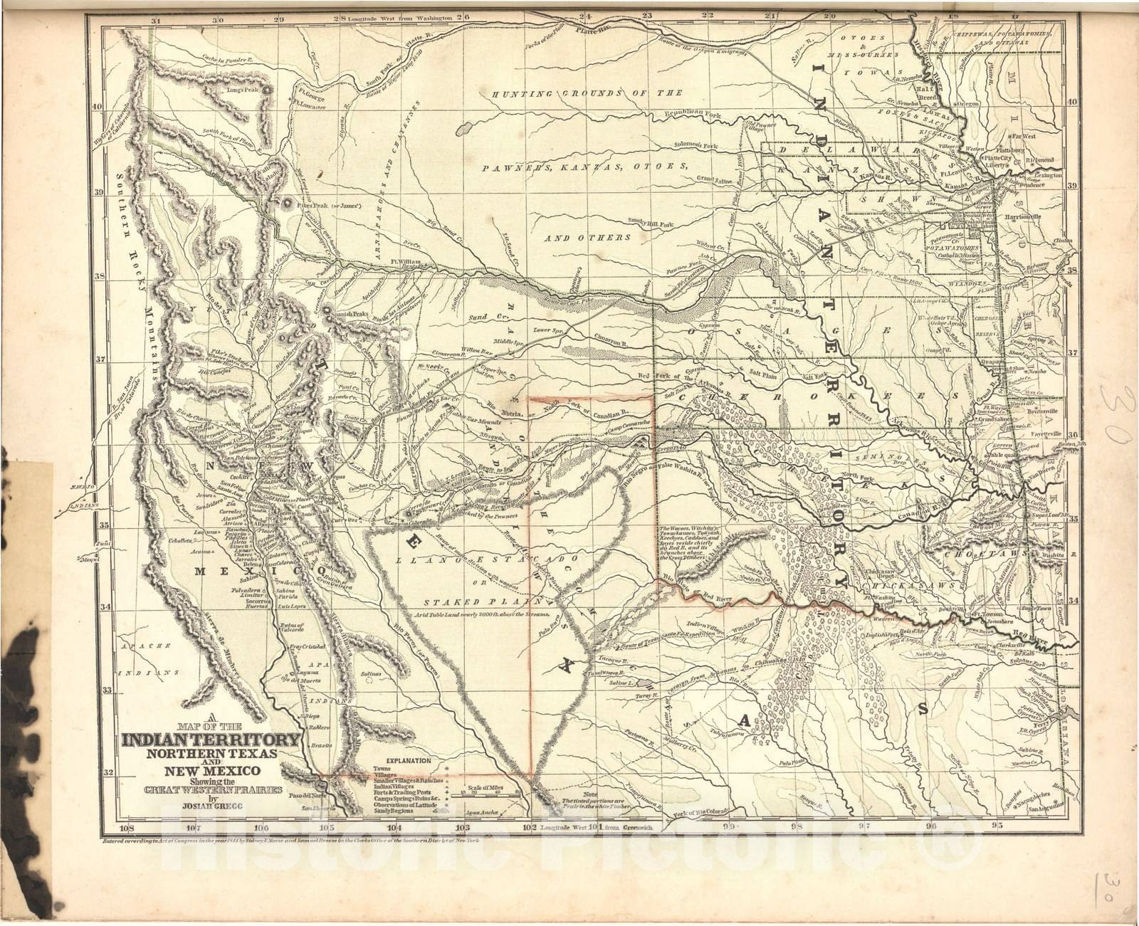 • Historic 1842 Map - Morse's North American Atlas. - Indian Territory (Northern Texas and New Mexico) - Morse's cerographic maps
