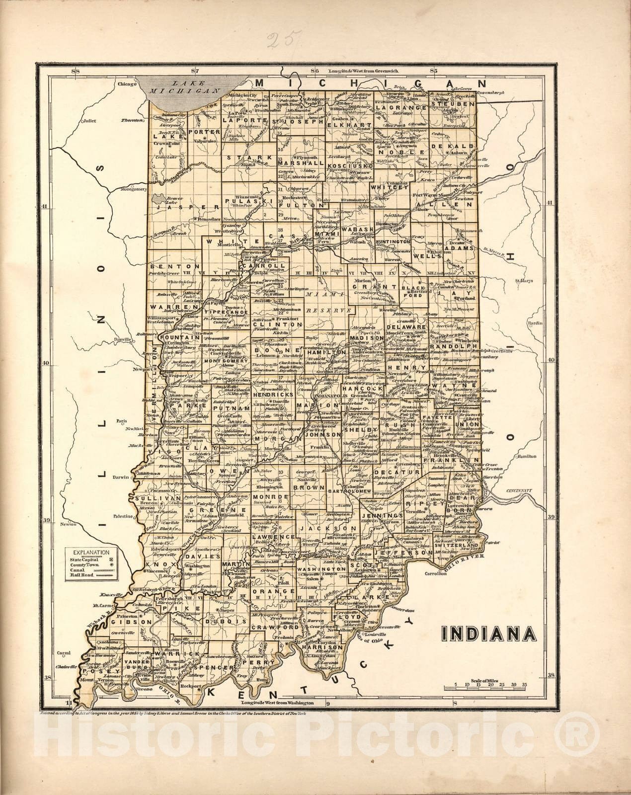 Historic 1842 Map - Morse's North American Atlas. - Indiana - Morse's cerographic maps