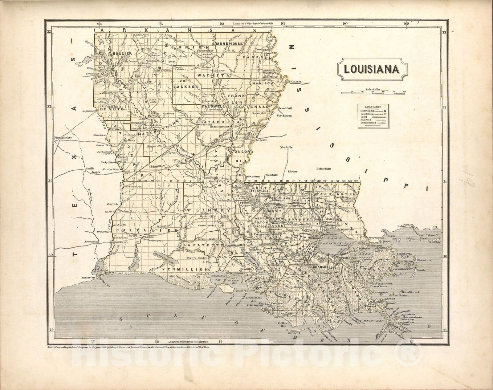 Historic 1842 Map - Morse's North American Atlas. - Louisiana - Morse's cerographic maps