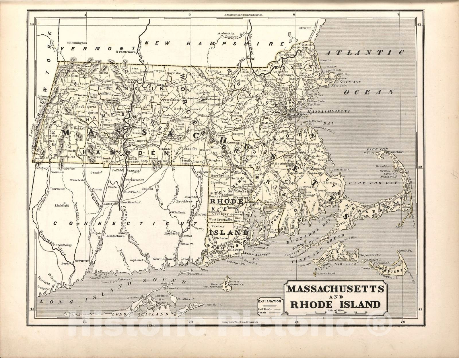 Historic 1842 Map - Morse's North American Atlas. - Massachusetts & Rhode Island - Morse's cerographic maps