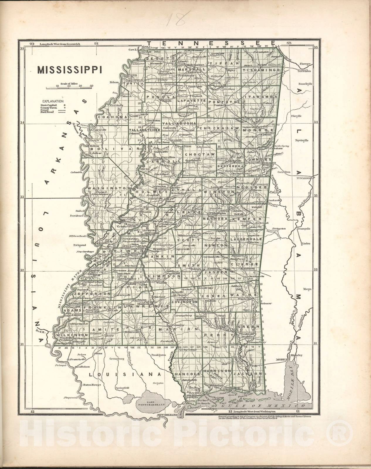 Historic 1842 Map - Morse's North American Atlas. - Mississippi - Morse's cerographic maps