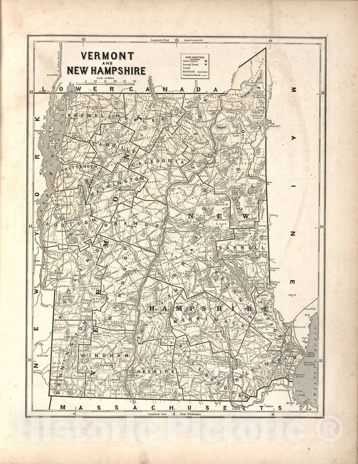 Historic 1842 Map - Morse's North American Atlas. - Vermont & New Hampshire - Morse's cerographic maps