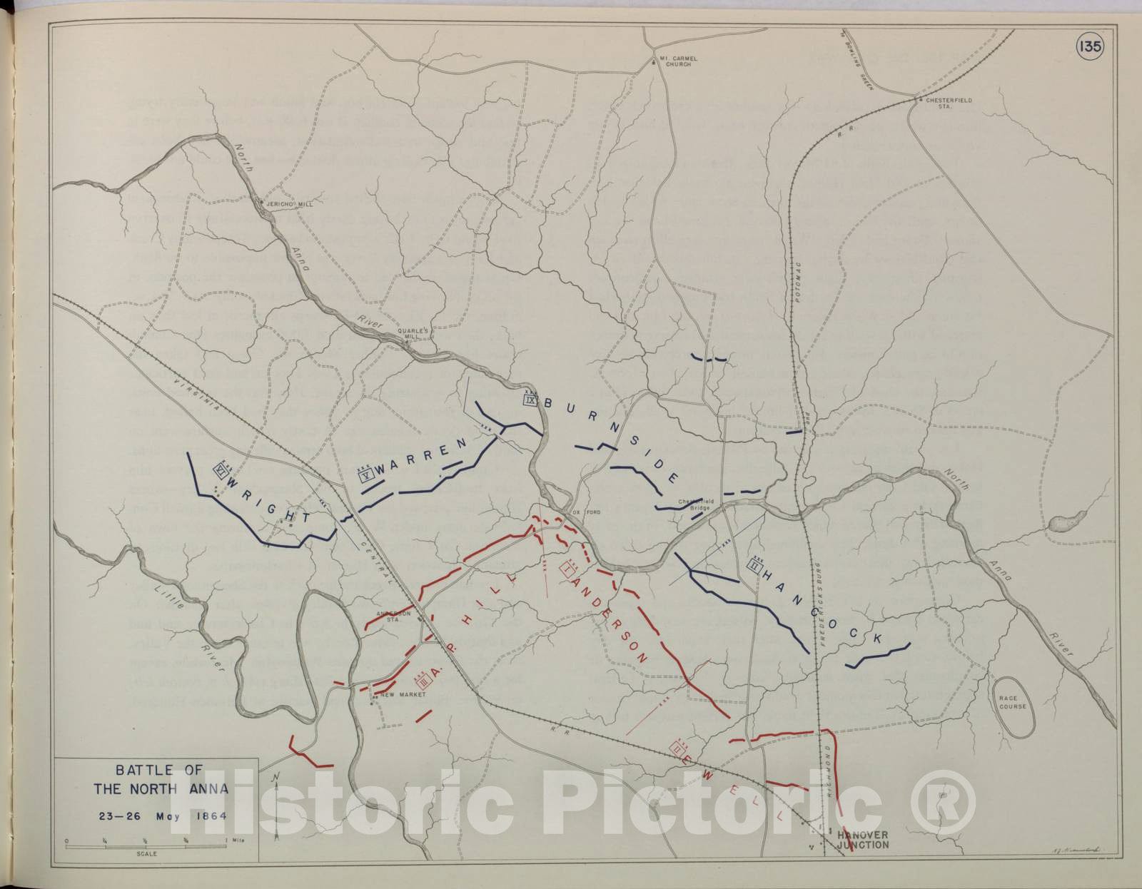 Historic 1959 Map - The West Point Atlas of American Wars - Battle of The North Anna, May 1864