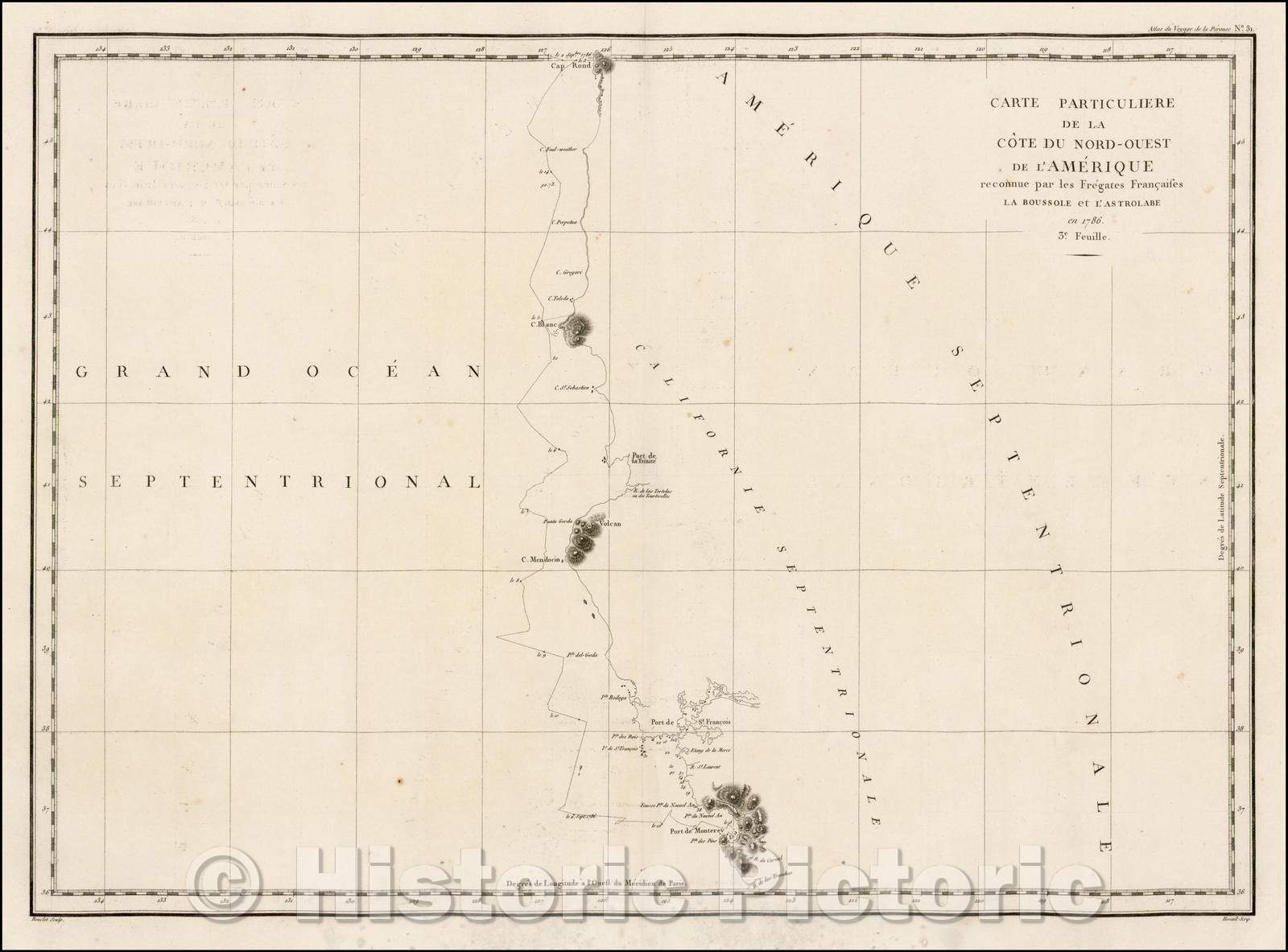 Historic Map - [Northern California and Oregon] Carte Particuliere de la Cote/North America, North American Wall Map, 1797, Jean Francois Galaup de La Perouse - Vintage Wall Art