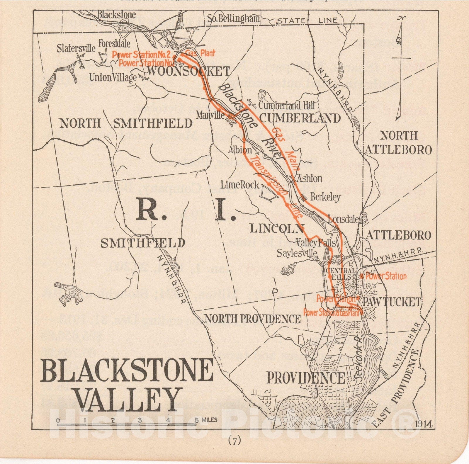 Historic Map : Blackstone Valley 1914 , North American Electric Power and Traction Companies , Vintage Wall Art