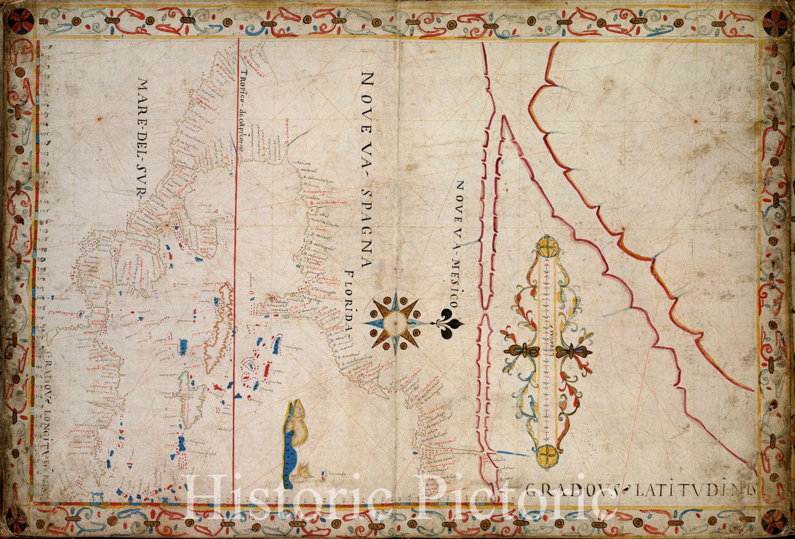 • Historical Map, ca. 1620 North American and Caribbean area, Vintage Wall Art