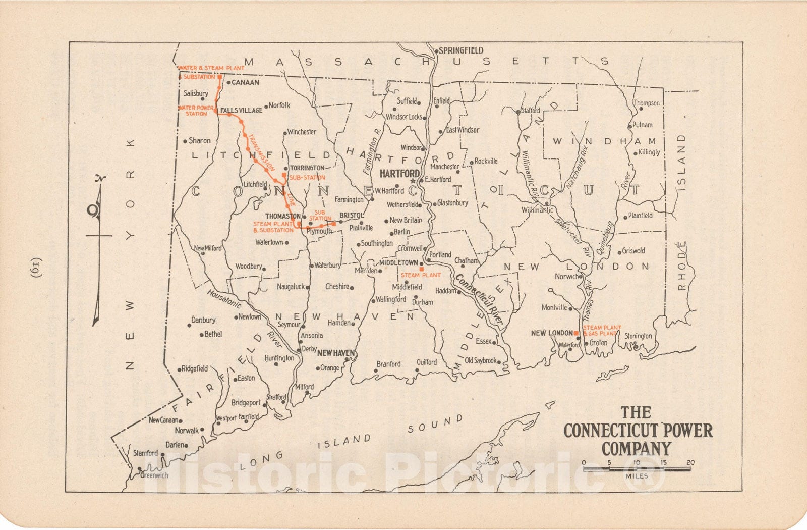 • .Historic Map : Connecticut Power Company 1914 , North American Electric Power and Traction Companies , Vintage Wall Art